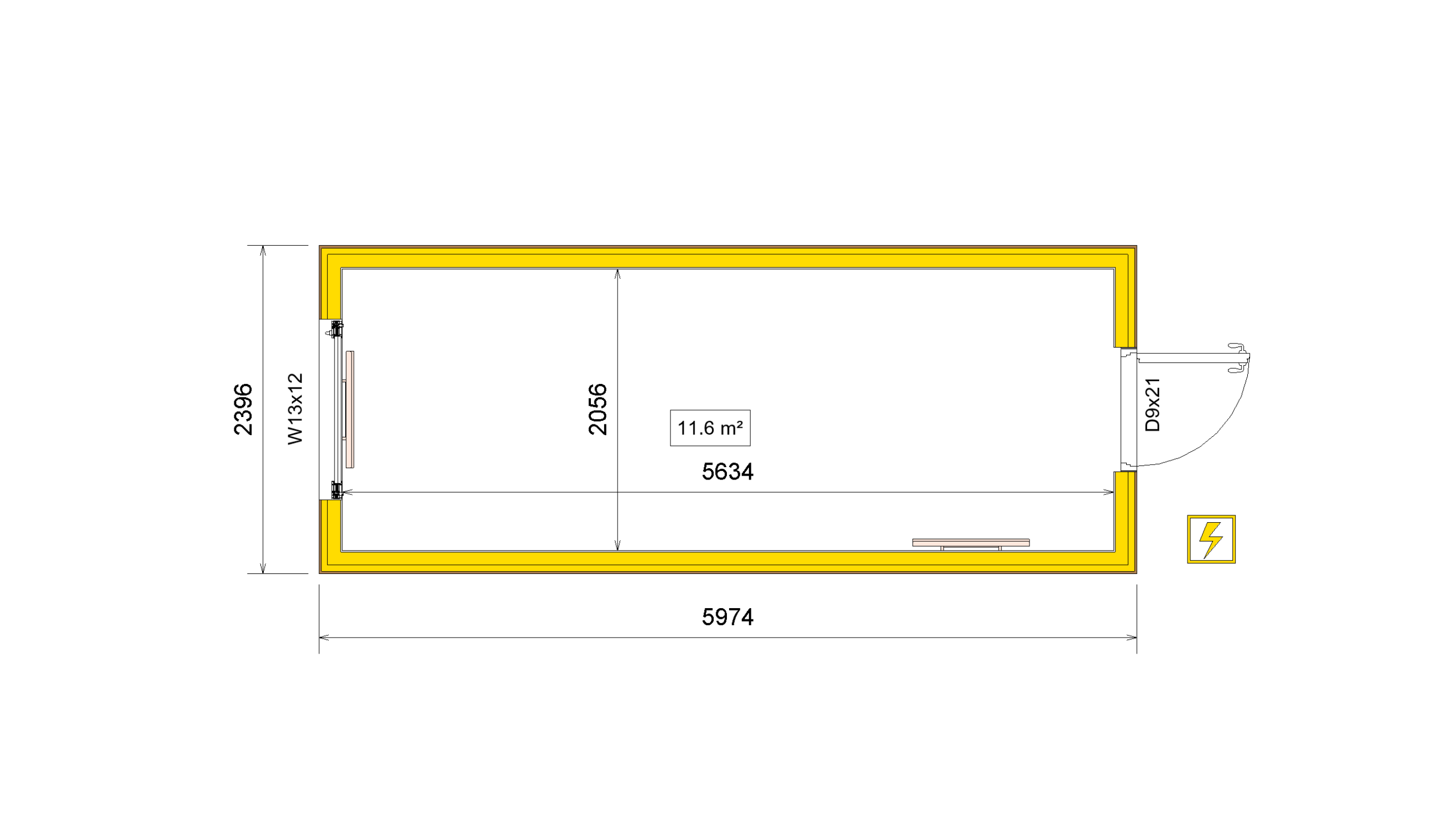 | Internal Dimensions (L x W x H) | 5634 x 2056 x 2400 |