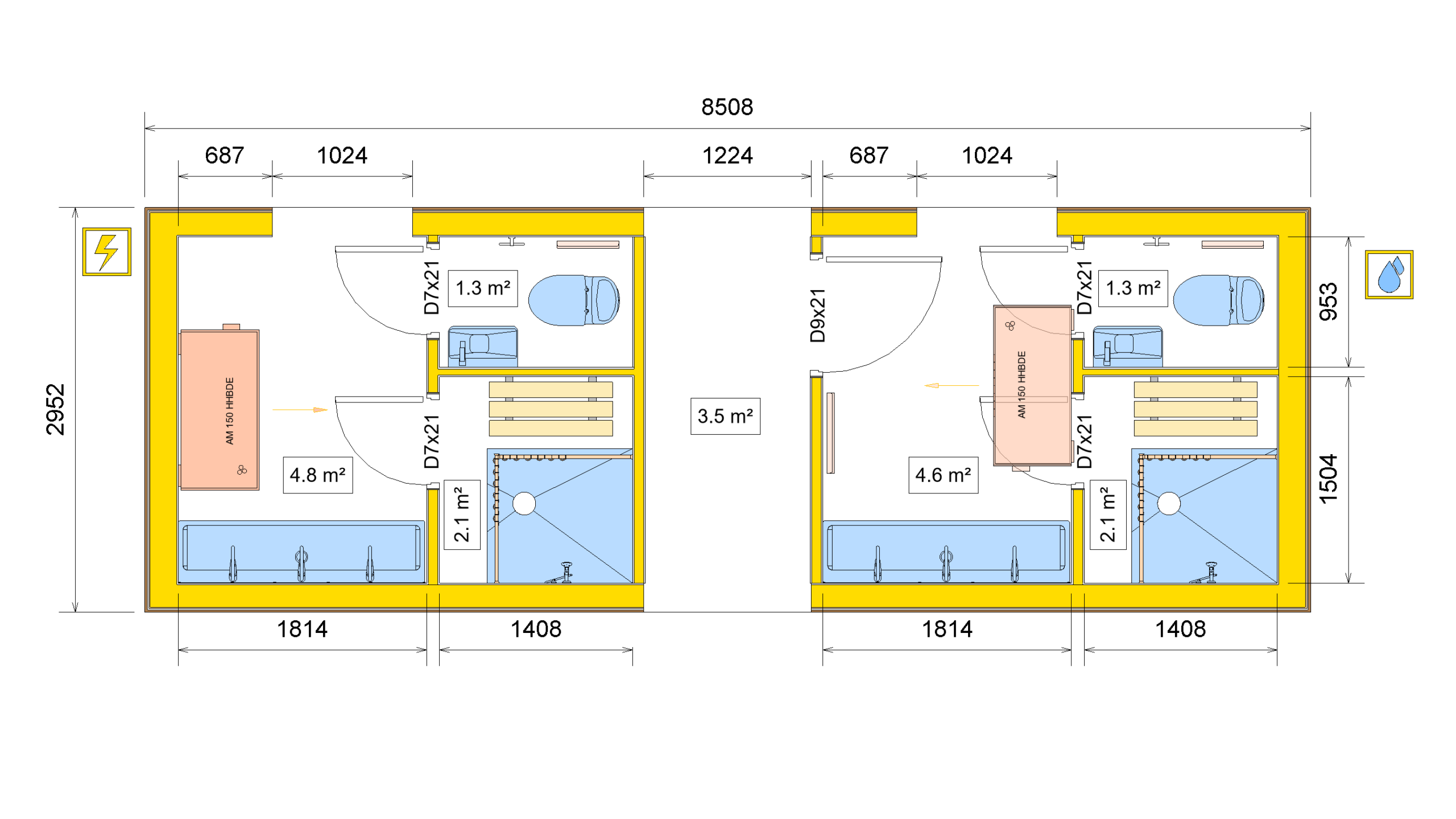 - This module is meant to be paired with 042 to create separated sanitary rooms connected to locker rooms