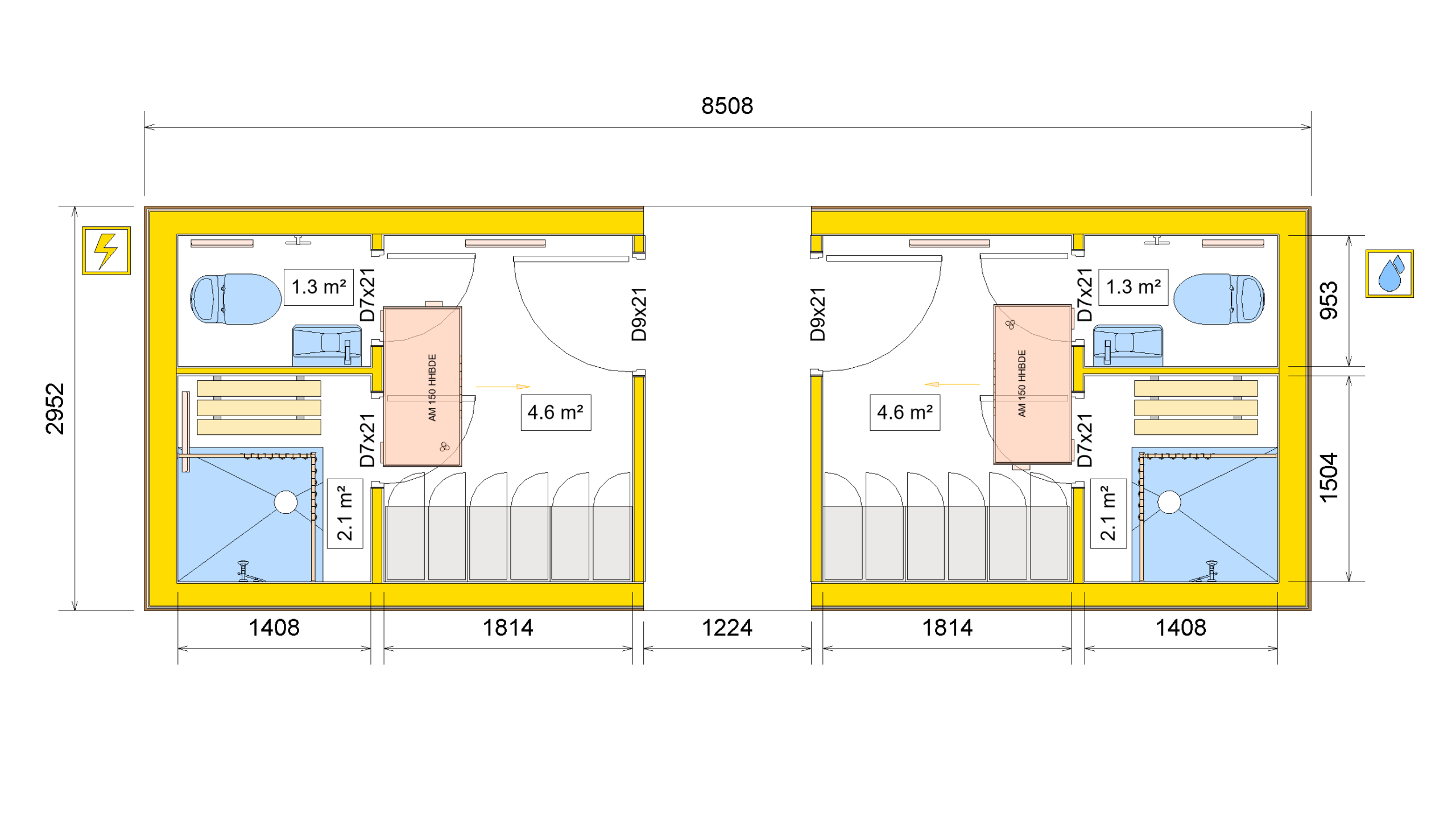 | Water & Sewage Connection | Water pipe Ø26,9 mm, Sewage pipe Ø110 mm |