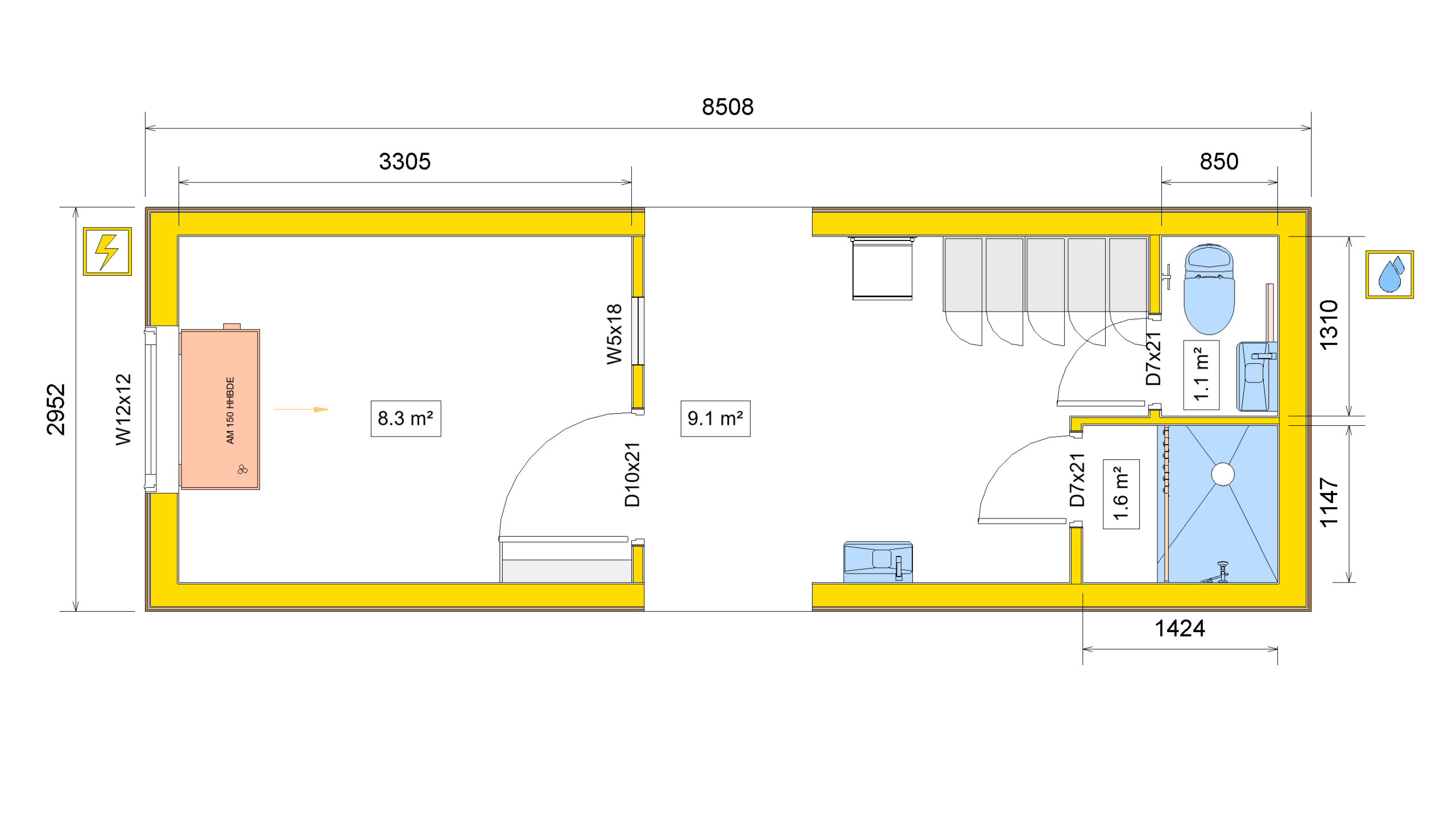| Water & Sewage Connection | Water pipe Ø26,9 mm, Sewage pipe Ø110 mm |