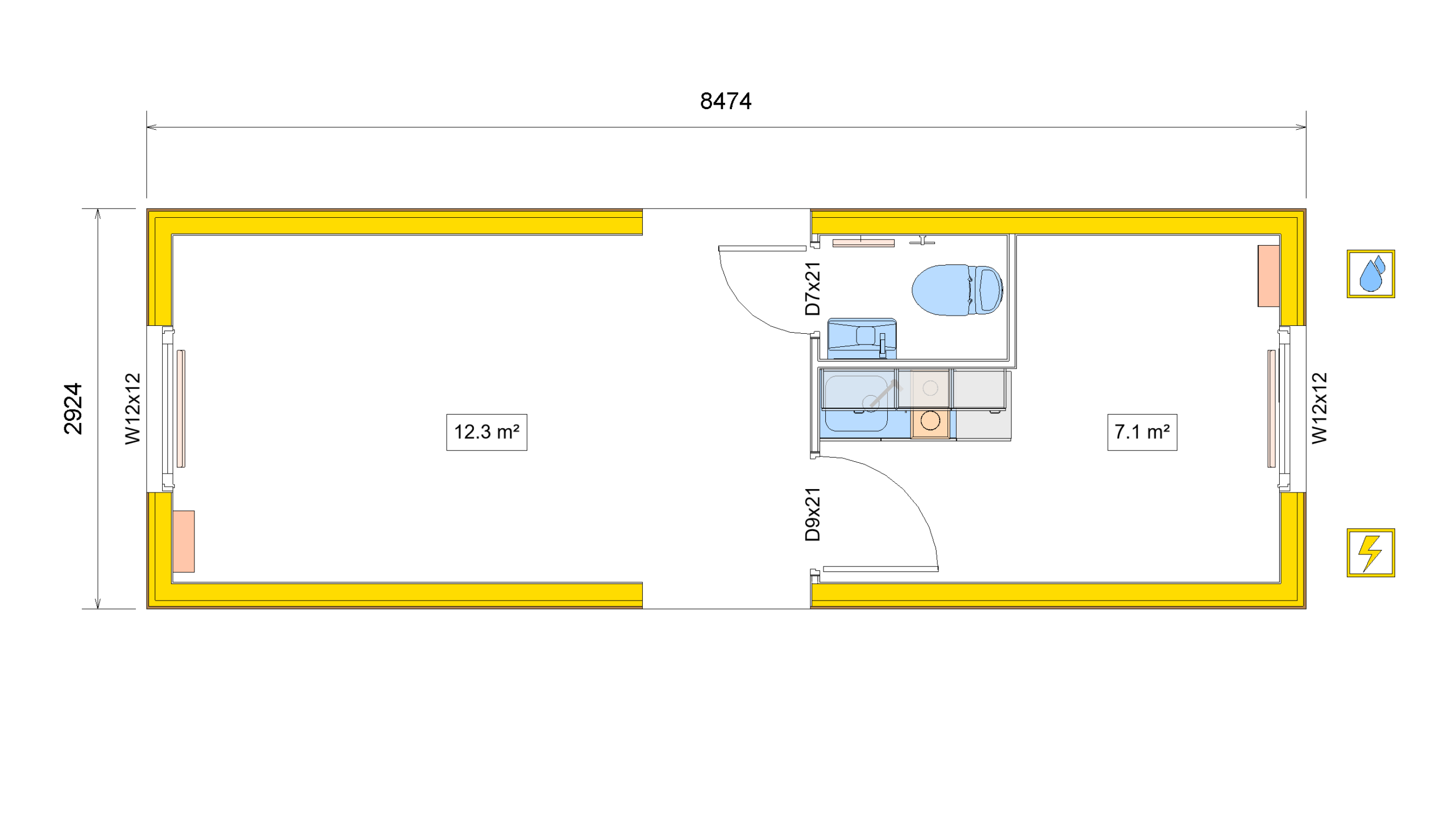 | External Dimensions (L x W x H) | 8474 x 2924 x 3000 |