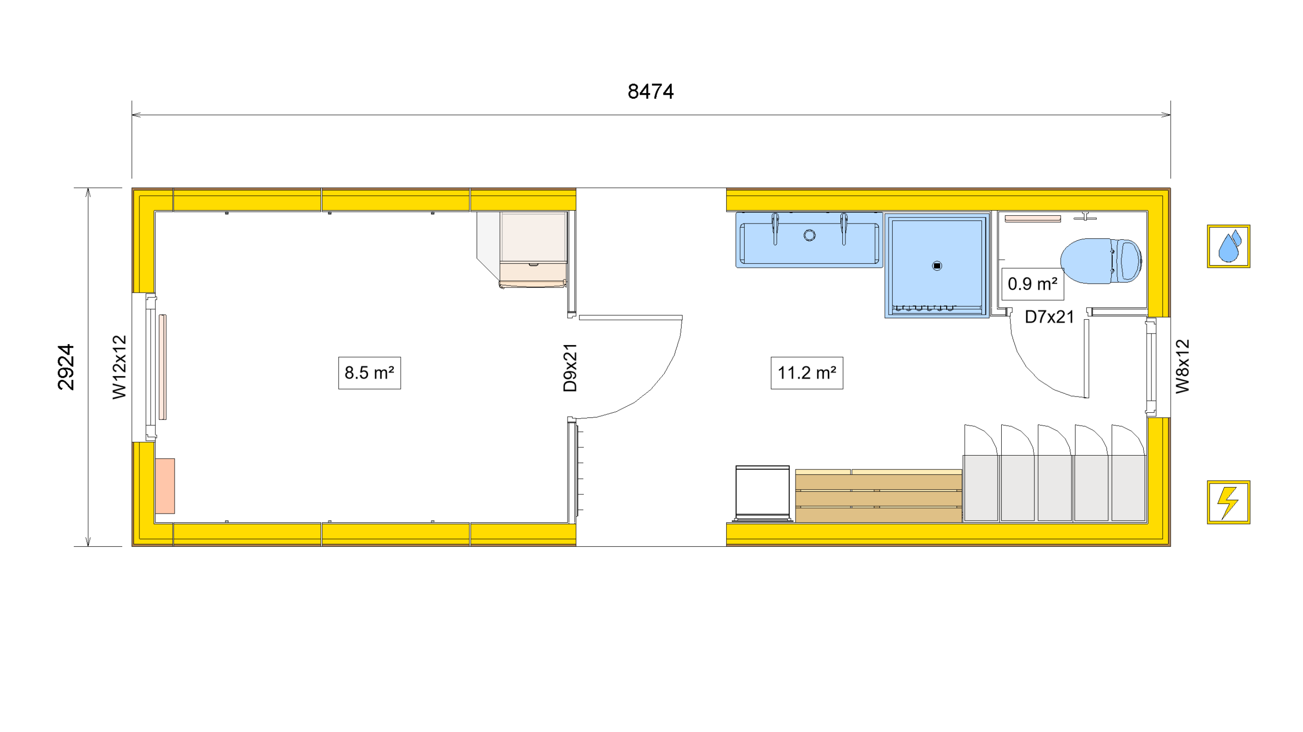 | External Dimensions (L x W x H) | 8474 x 2924 x 3000 |
