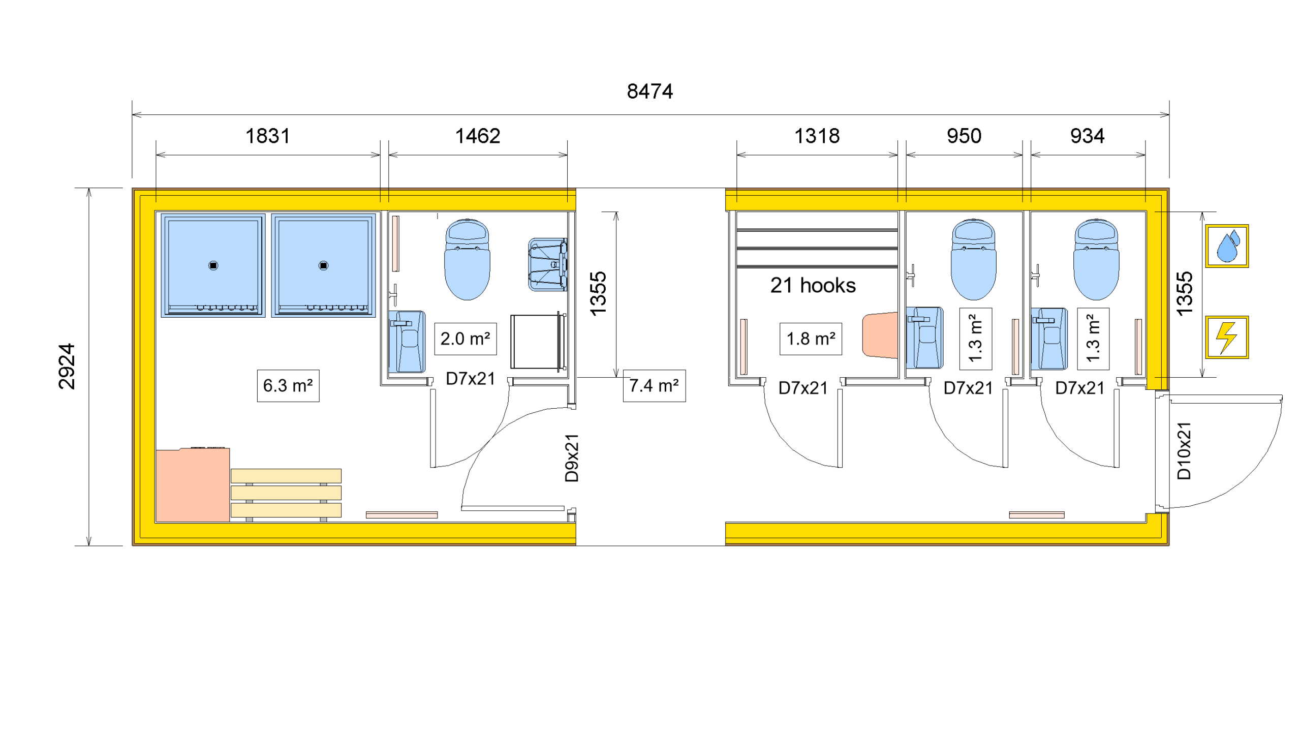 | Water & Sewage Connection | Water pipe Ø26,9 mm, Sewage pipe Ø110 mm |