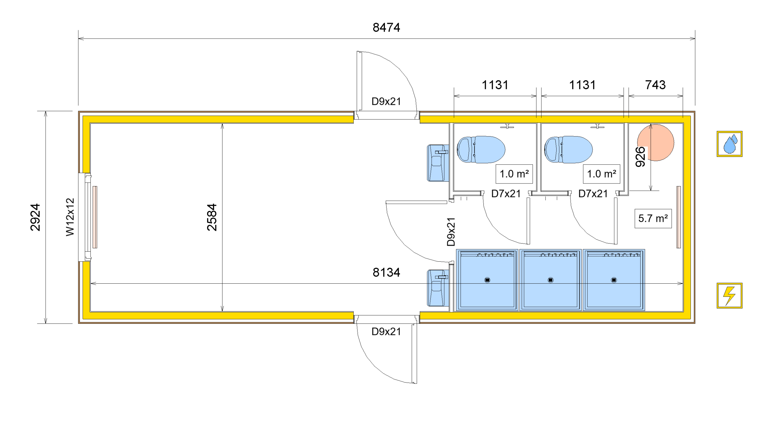 | Water & Sewage Connection | Water pipe Ø26,9 mm, Sewage pipe Ø110 mm |