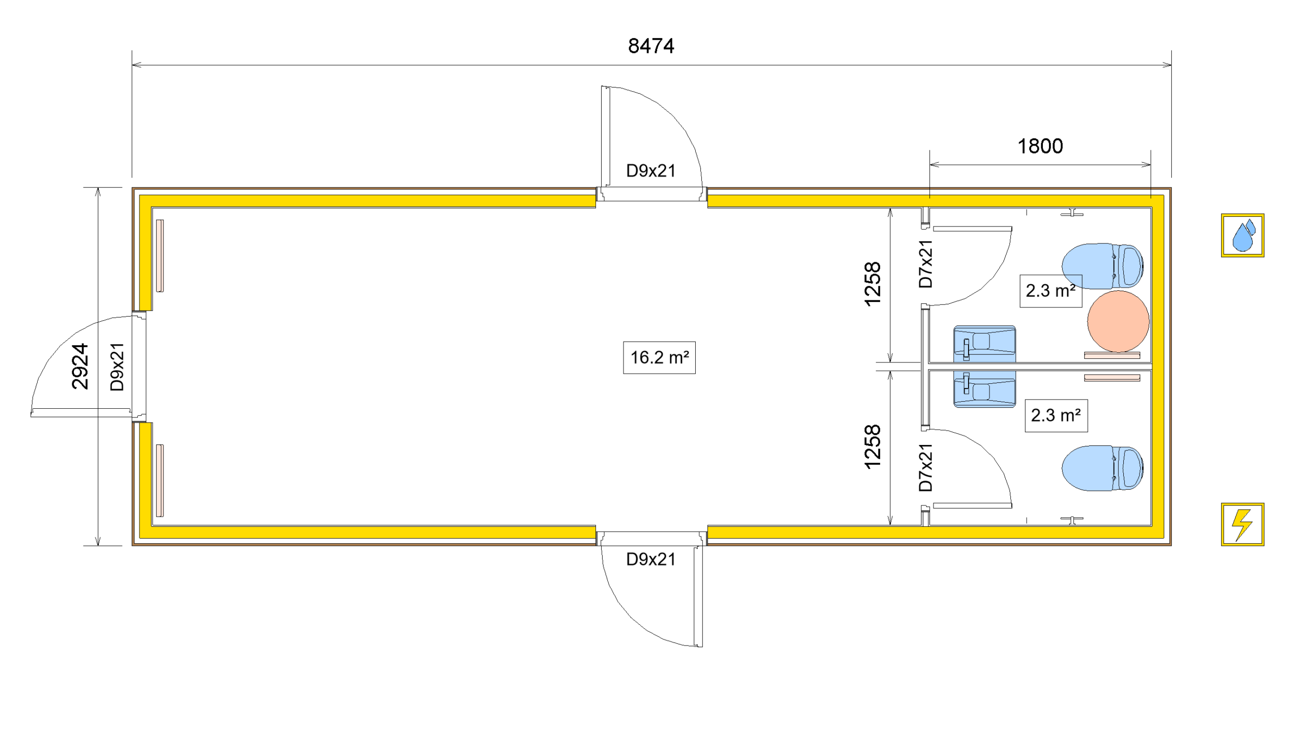 | Water & Sewage Connection | Water pipe Ø26,9 mm, Sewage pipe Ø110 mm |