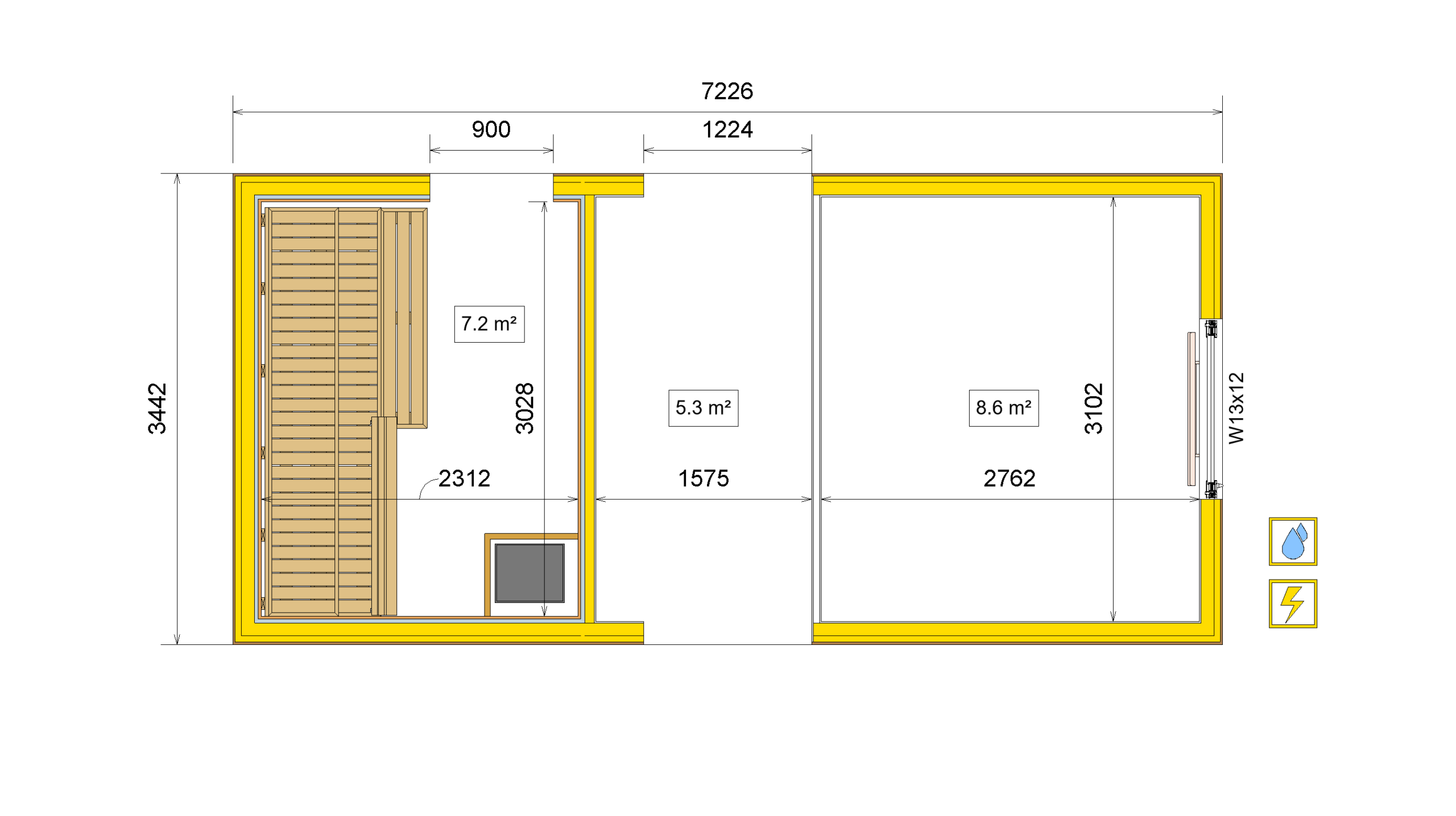 | External Dimensions (L x W x H) | 7226 x 3442 x 3000 |