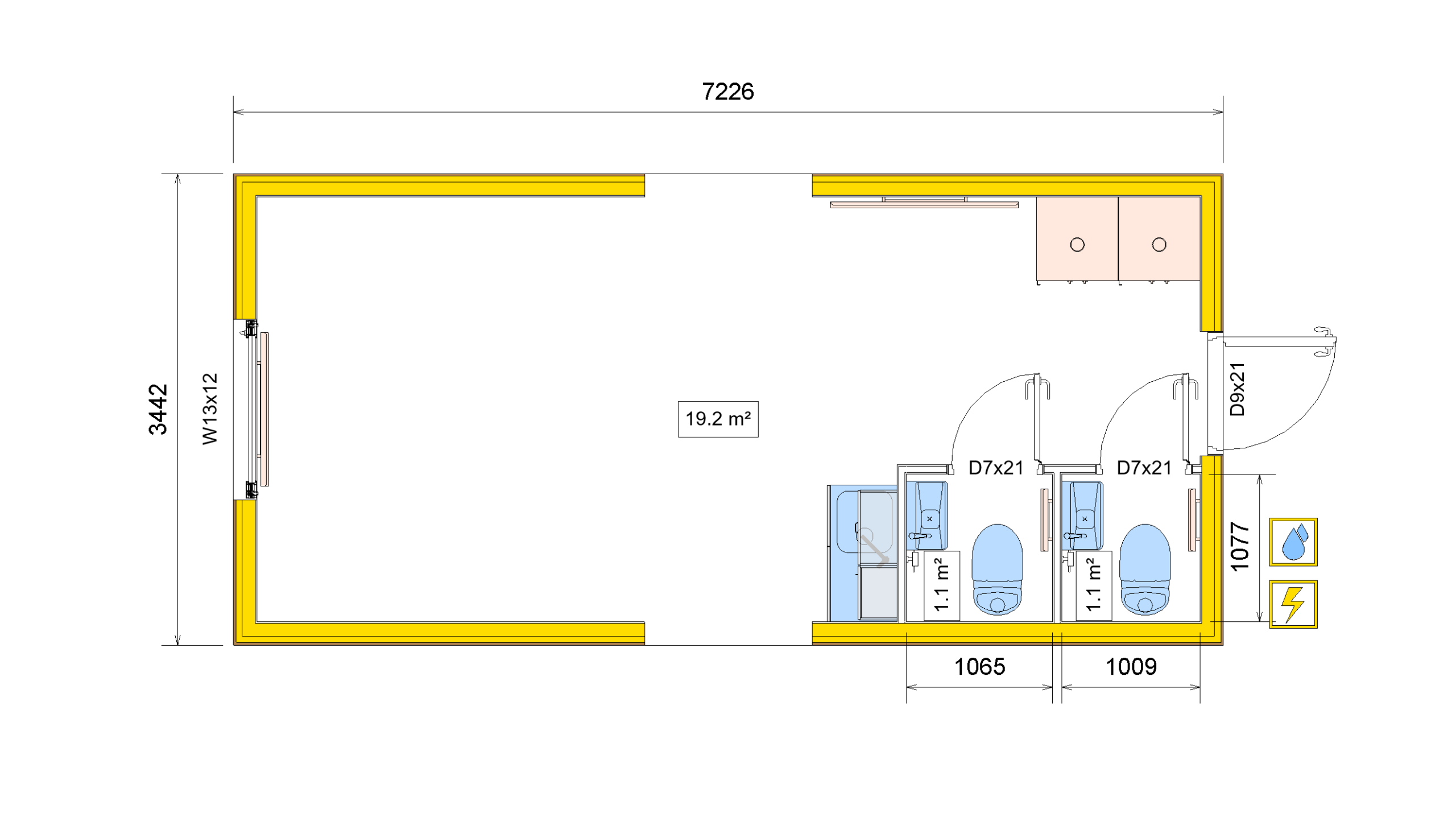 | Water & Sewage Connection | Water pipe Ø26,9 mm, Sewage pipe Ø110 mm |
